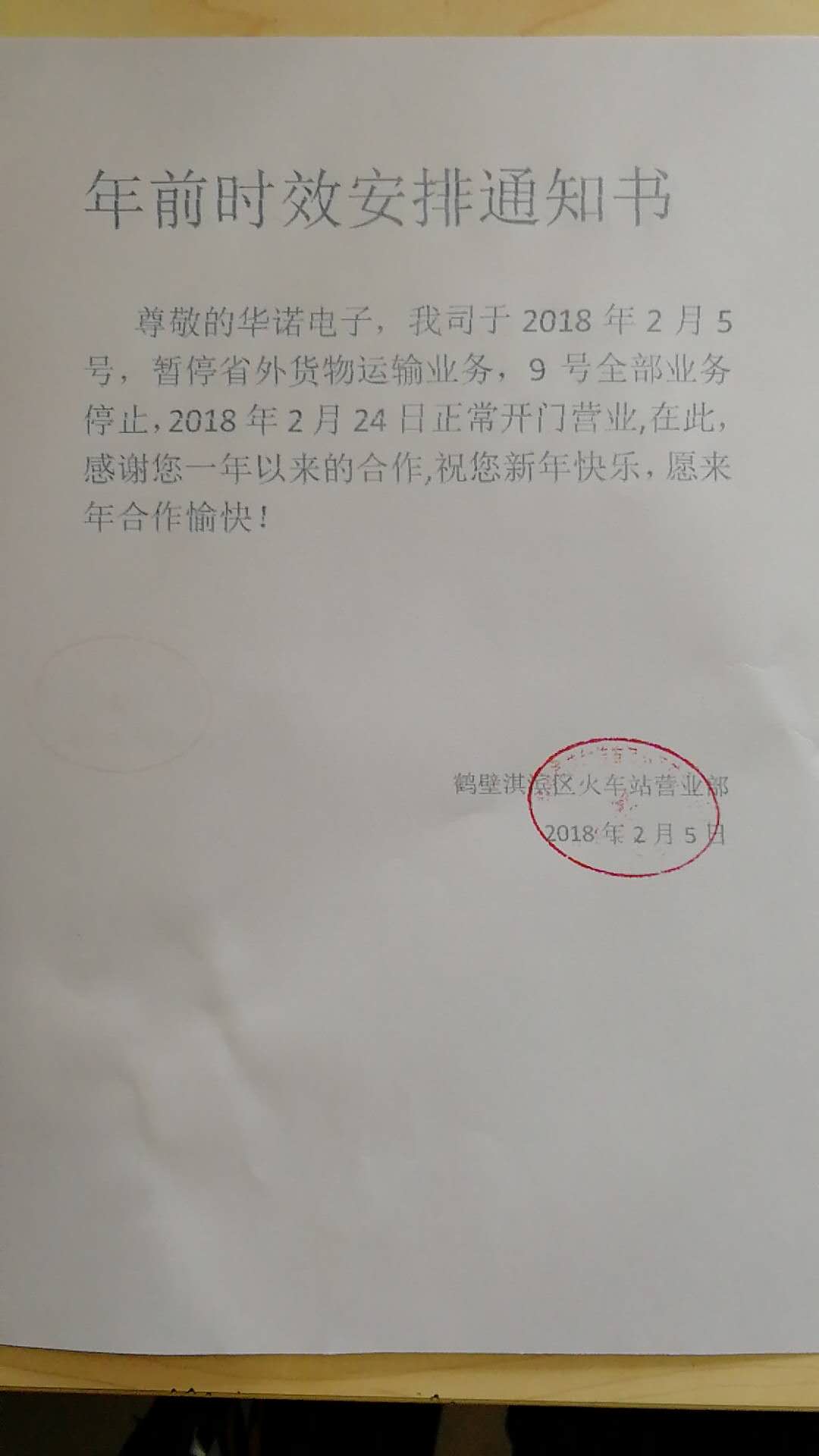 關(guān)于2018年春節(jié)物流貨運放假通知
